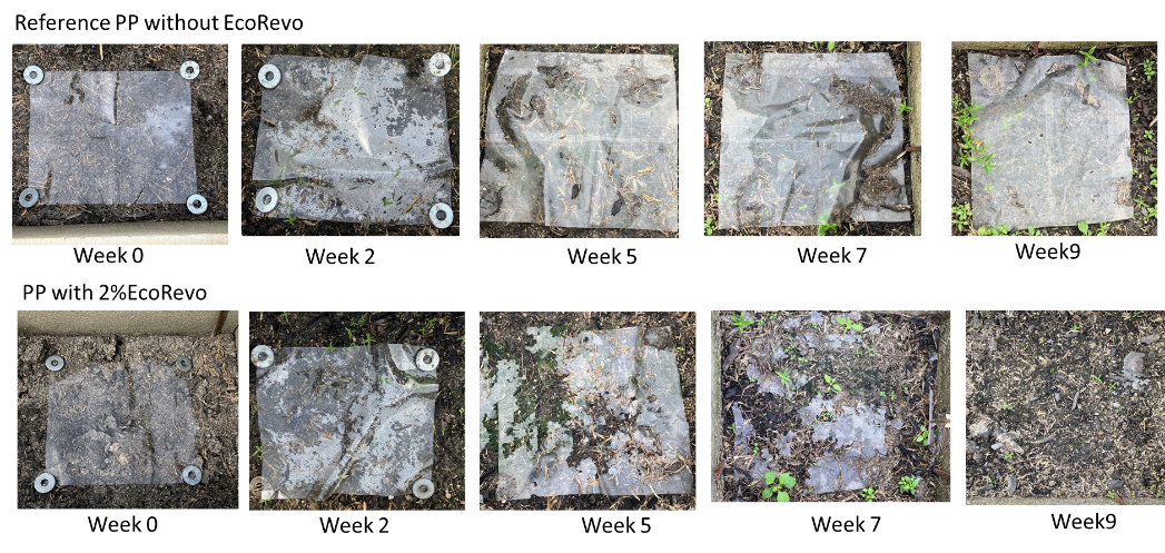 EcoRevo leaves no "microplastic" at the end of its self-destructive processes, hence environmentally friendly with no impact on ecotoxicity, easy to use and recyclable. EcoRevo is complied with current food safety regulations.